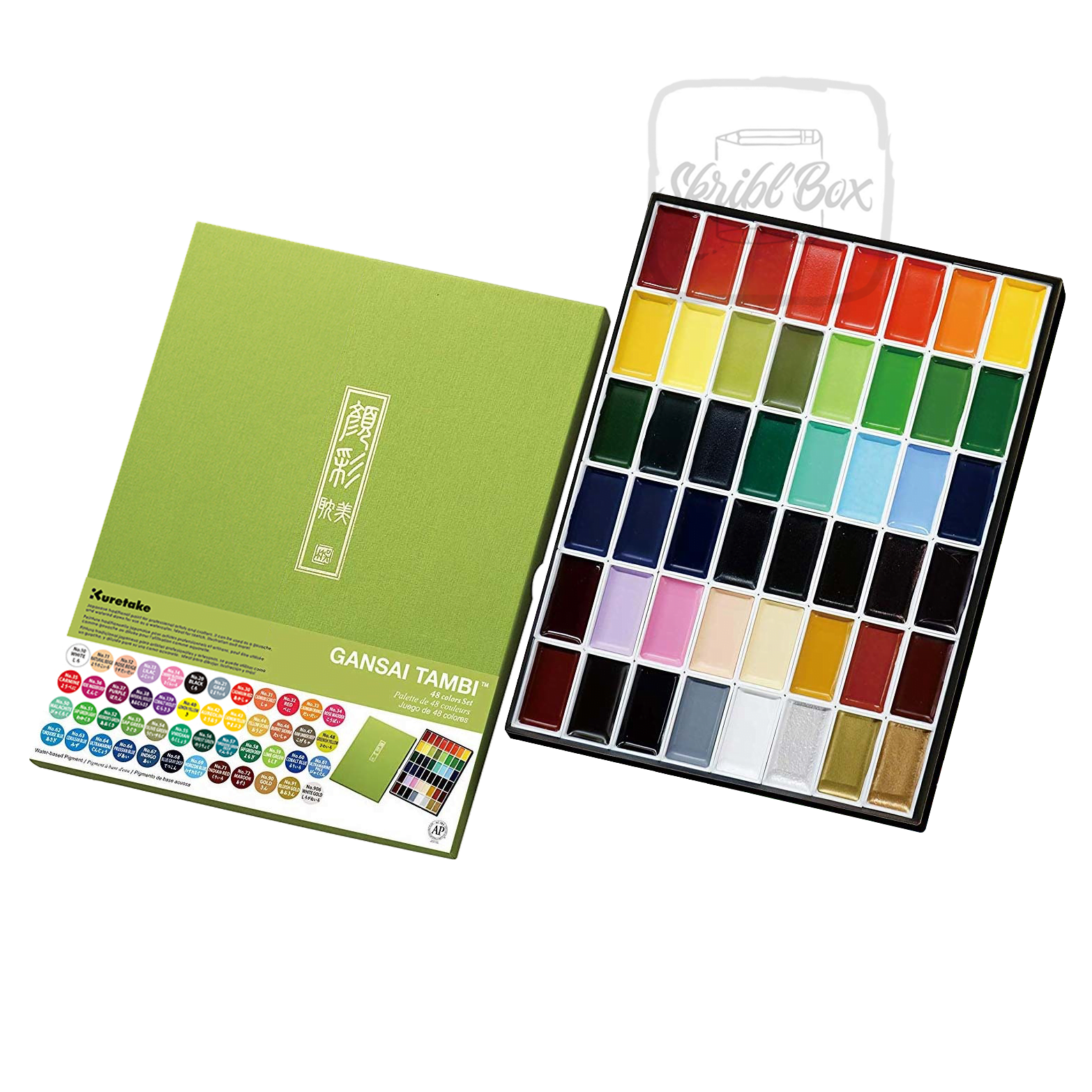 Gansai Tambi Watercolor 48 Color Set with Skribl Box Aqua Brush Set Round Tip – Kuretake