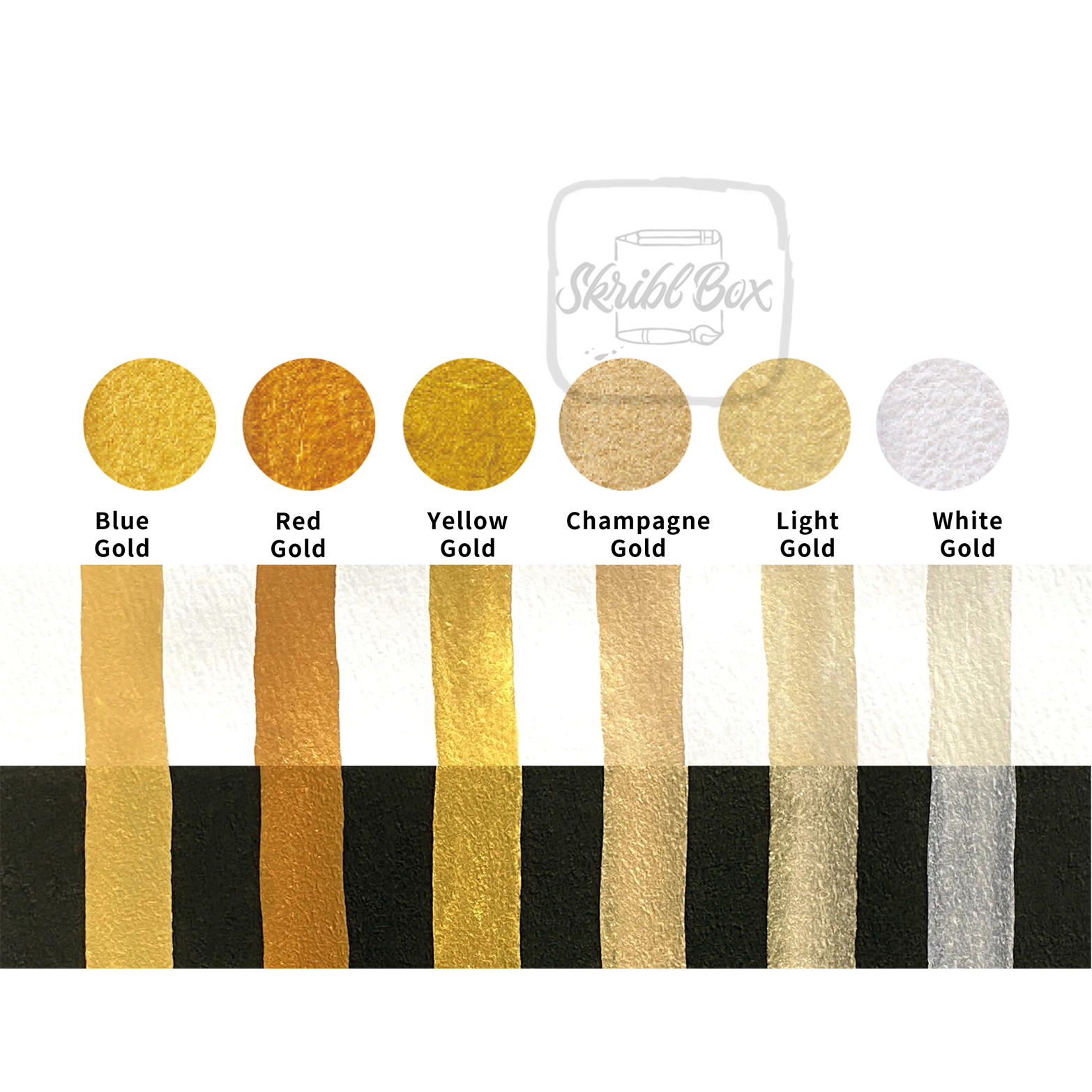 Beautiful golden, pearl-tinted Gansai colors. They can be used to express a variety of shimmering effects such as elegance, or boldness and strength. These high-caliber watercolors are blendable and have a creamy-smooth feel that show up well on dark paper.